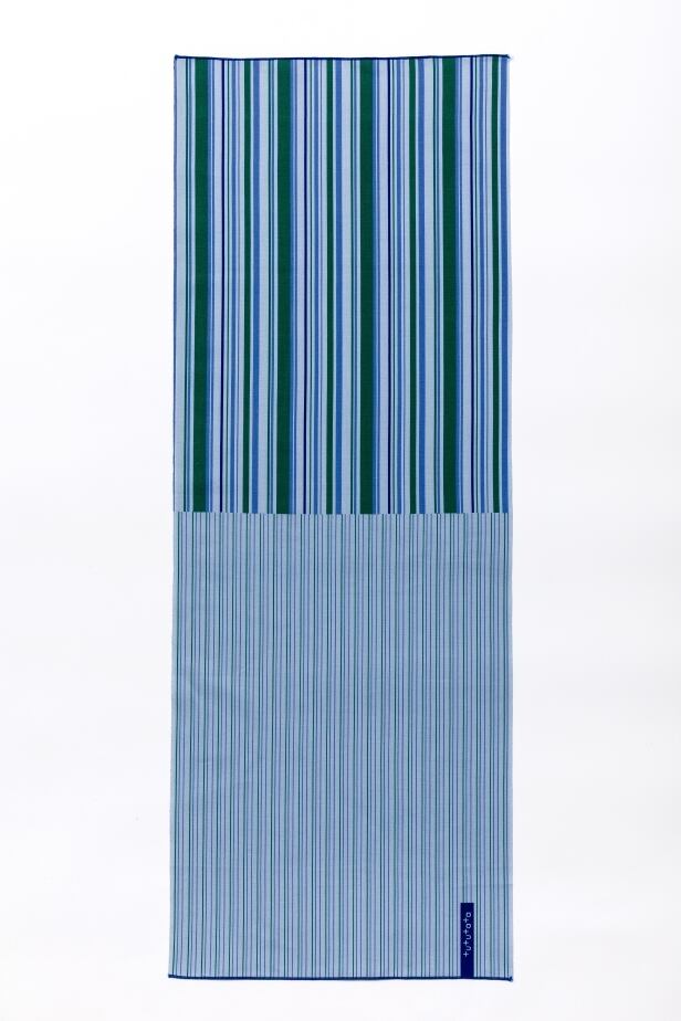 1枚で2つのストライプを楽しめるシンプルで使い勝手のいい手ぬぐい。半分に折って、食事の時のおしゃれ着の汚れ防止に。どちらの柄を使うかはその時の気分で。ビジネスでもオフタイムでも使える、男性にもおすすめの色柄です。